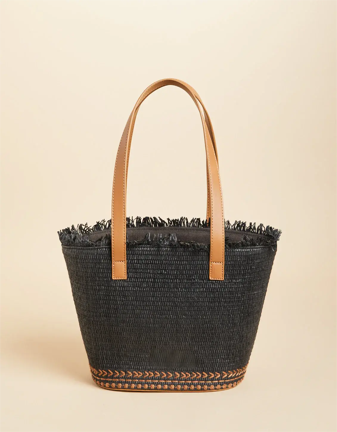 - Straw fringe along top