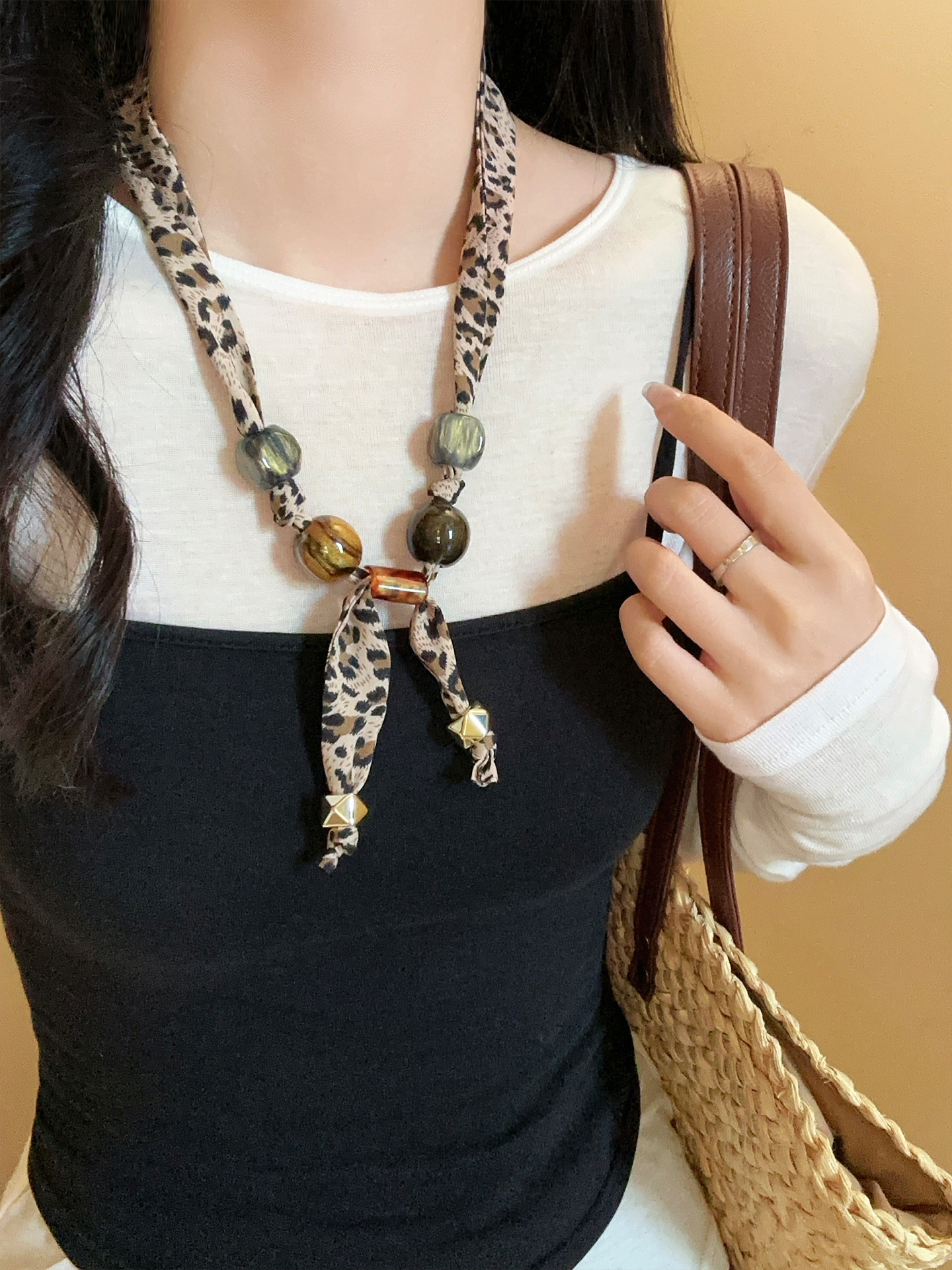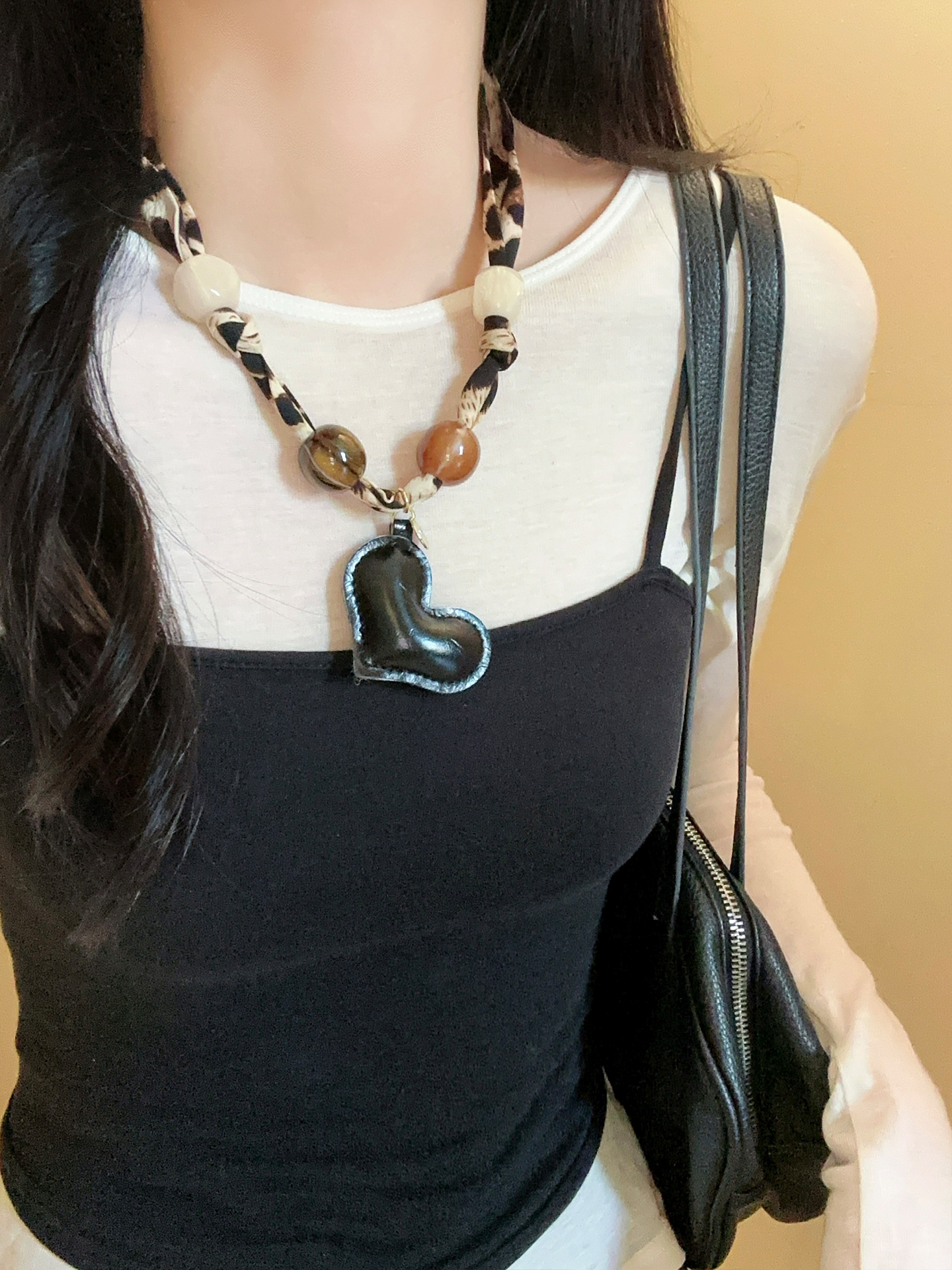 Heart-shaped – Leopard print beaded necklace, light leopard print beaded necklace, dark leopard print beaded necklace